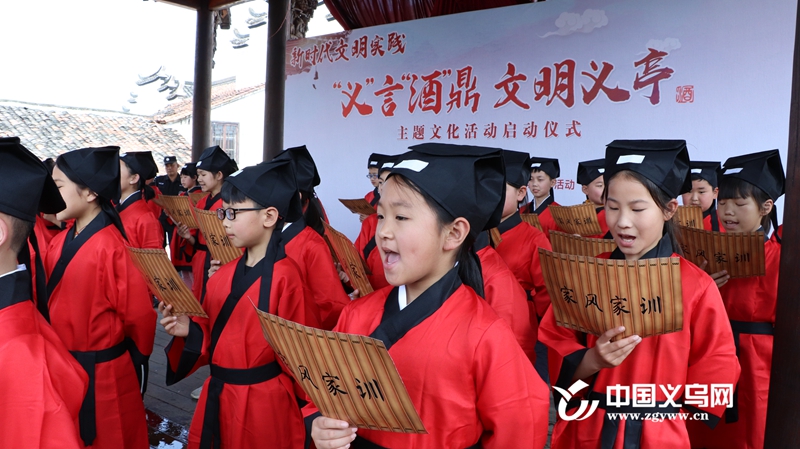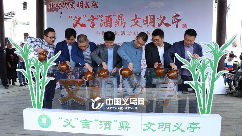中国义乌网5月1日讯(记者 李学娇 见习记者 龚程燕 编辑 童晓)今天(5月1日)上午,义乌义亭镇缸窑村的谦受堂古戏台前人头攒动,鼓乐喧天、载歌载舞的热闹氛围吸引了一批又一批市民前来观礼。由共青团义乌市委、义亭镇党委、义亭镇人民政府、恒风集团主办,义亭镇团委、义亭镇妇联、中国义乌网和缸窑村共同承办的“新时代文明实践——‘义’言‘酒’鼎文明义亭”主题文化活动启动仪式在此拉开帷幕,注酒点亮的“文明义亭”四个大字在阳光下熠熠生辉。