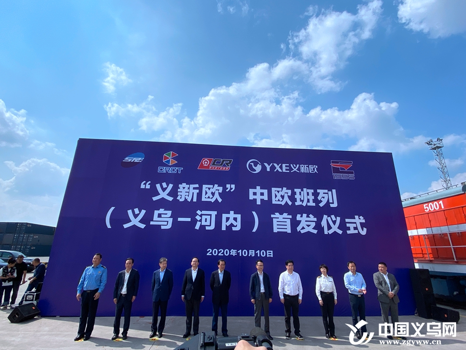 中国义乌网10月10日讯(记者 龚书弘 编辑 童荟颖)今天(10月10日)上午,“义新欧”中欧班列(义乌-河内)首发仪式在义乌西站举行。